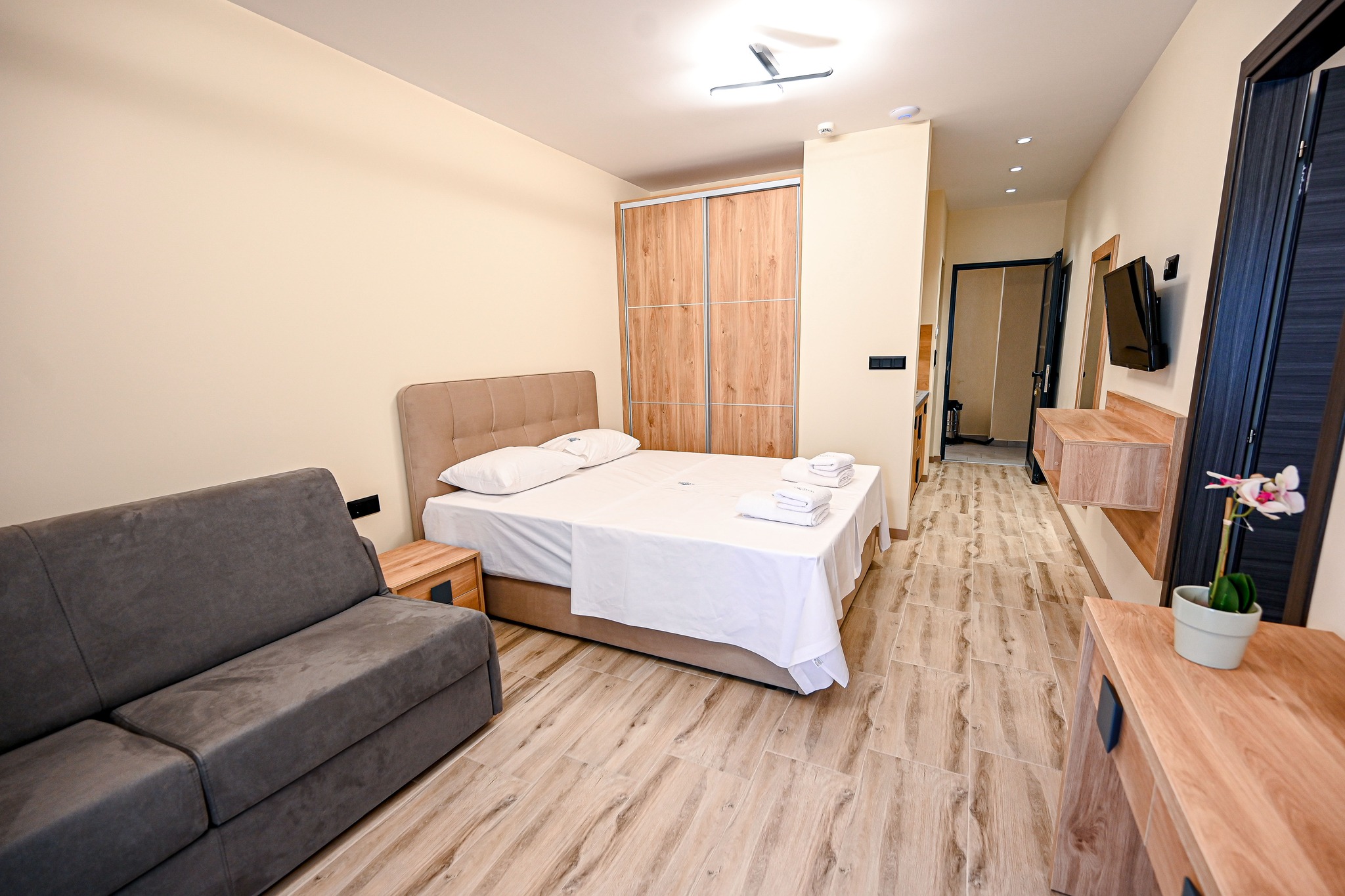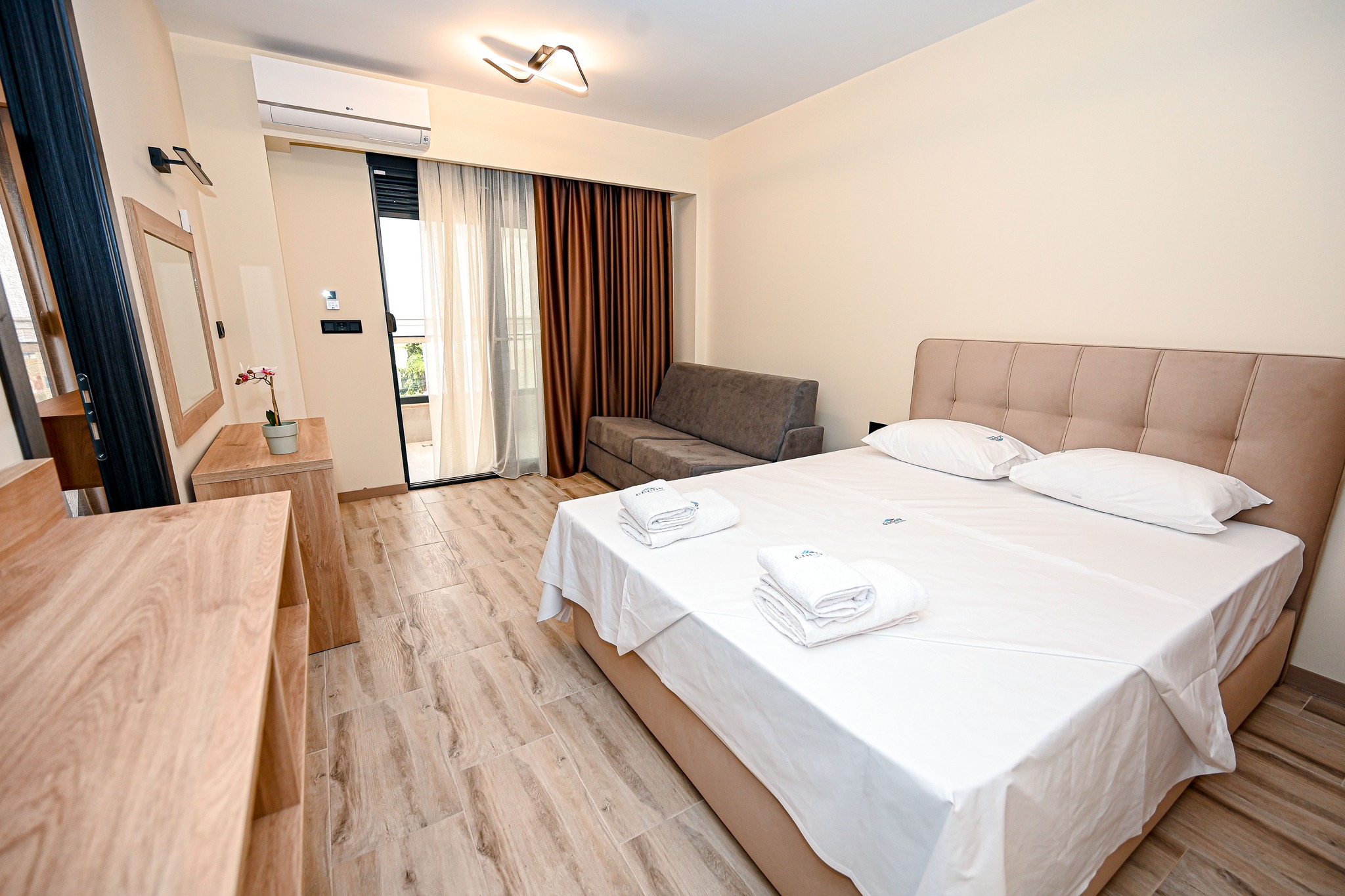 Introducing our Ultra 6 Adults Apartment – A spacious and accommodating retreat designed for larger groups. This well-appointed apartment features a comfortable setup for up to six people. With a double bed, sofa/bedroom, and an additional separate bedroom, the Ultra Apartment provides ample sleeping space. Enjoy the convenience of a fully equipped kitchen, a private toilet, air conditioning, and a TV. The charm of the Ultra Apartment is further enhanced by a generous balcony, offering a perfect spot to unwind and enjoy the surroundings. Elevate your stay with the Ultra Apartment, crafted to provide a comfortable and enjoyable experience for groups of up to six people.