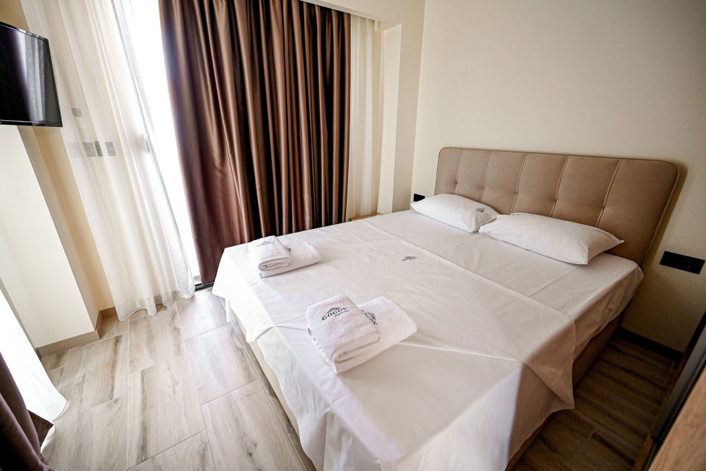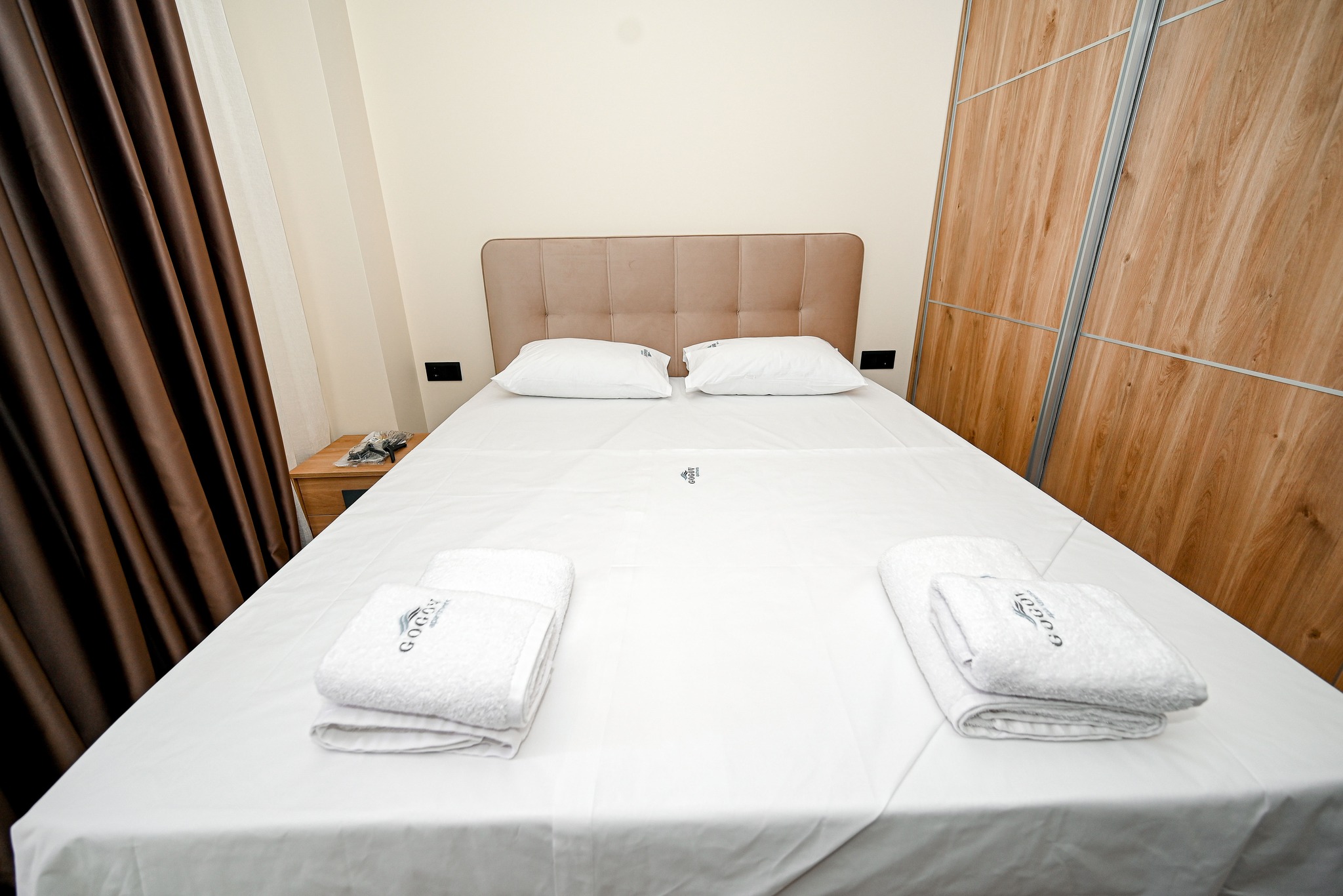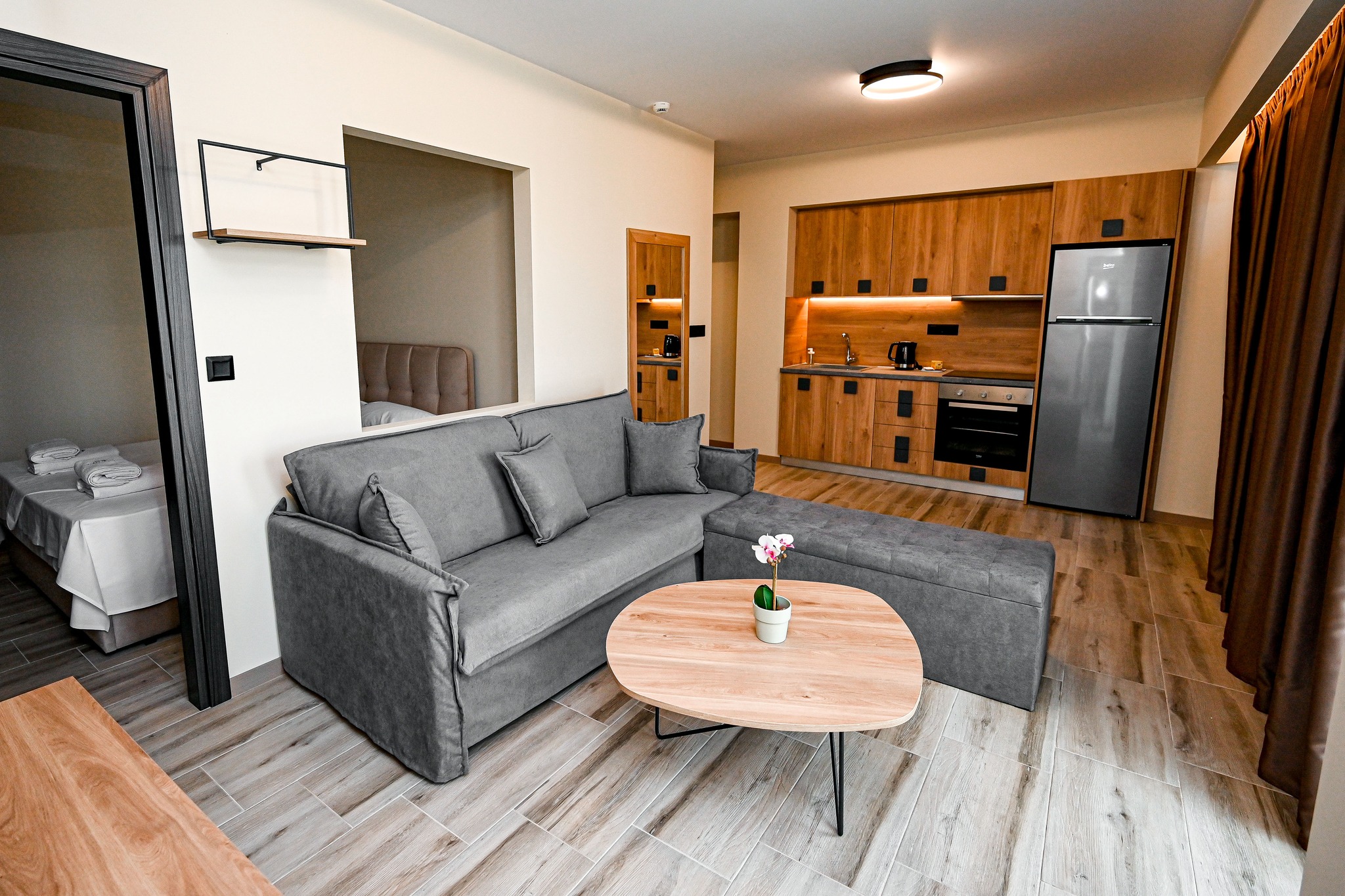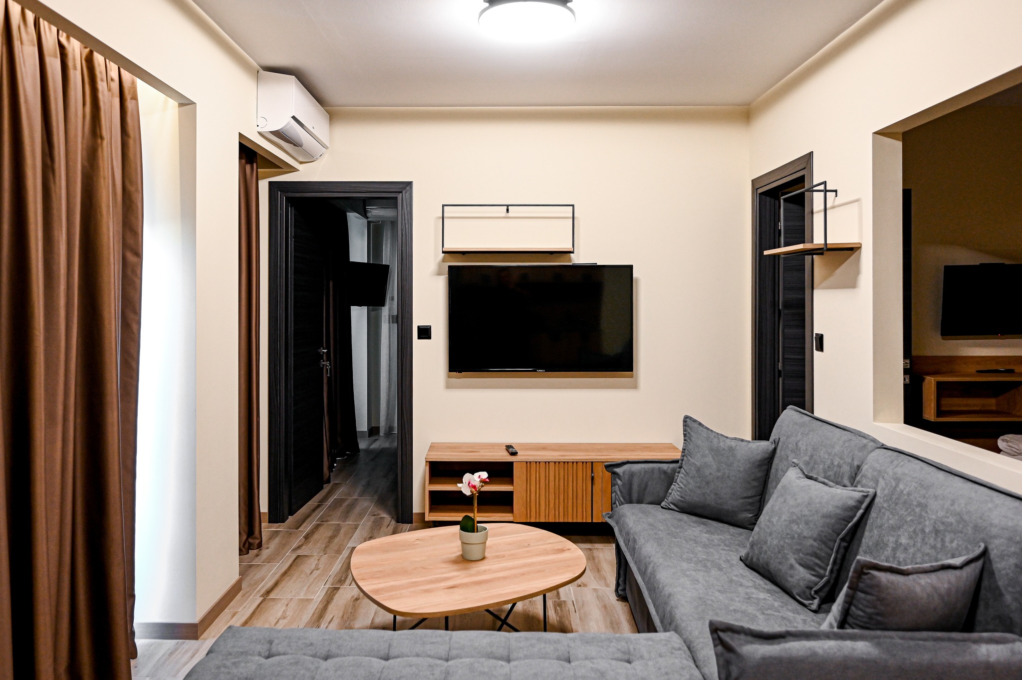 Our superior apartment provides a spacious and comfortable experience with two separate bedrooms, a cozy living room, and a generous balcony, overlooking the center of Kalithea. Each unit is equipped with essential amenities, including an LCD TV, air conditioning, and a well-appointed kitchen featuring a mini-fridge, stove, and microwave. The dining area is furnished with a table and chairs tailored to the accommodation’s capacity, and windows are equipped with blinds and curtains for added privacy. The bathrooms, tastefully decorated, include a shower directly on the tiles and a convenient hairdryer. Bed linen and towels are integral to each accommodation unit and are changed once during your stay. Enjoy a heightened level of comfort and relaxation in our superior accommodations.